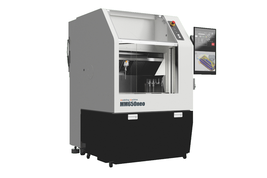岩間工業所の新モデルの「MM650neo」では、「誰もが簡単に使える」ことを目的に、操作するコントローラー部分も自社開発、Windowsのパソコンとタッチパネルディスプレイに置き換えました。ディスプレイでは、グラフィカルに現在の進捗や座標の情報を見ることができ、制御装置の操作に比べ、パソコンやスマートフォンにアプリをベースにした見慣れたUIとタッチパネルでの操作は、例えば初見の学生さんでも少しレクチャーを受ければ使うことが可能です。