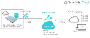 さらに、スマートマットで取得したデータをクラウドに送信するにあたっては、データ転送支援サービスSORACOM Beamも使用しています。通信の暗号化とデバイス認証を一元管理し、高いセキュリティ強度を保ちながら、通信料金や電池の使用量を抑えることに成功しています。