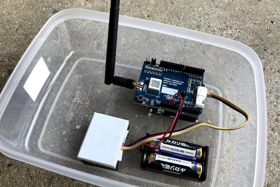 森林も多い高知県では、Sigfoxでは電波強度が足りないエリアもあることから、セルラー基地局を利用した省電力通信LTE-Mも併せて採用しました。同じくIoTストアで販売しているマイコンボードWio LTE M1/NB1(BG96)を利用して開発しました。