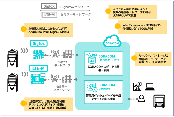 省電力通信のSigfoxとLTE-Mを用いてSORACOMで可視化